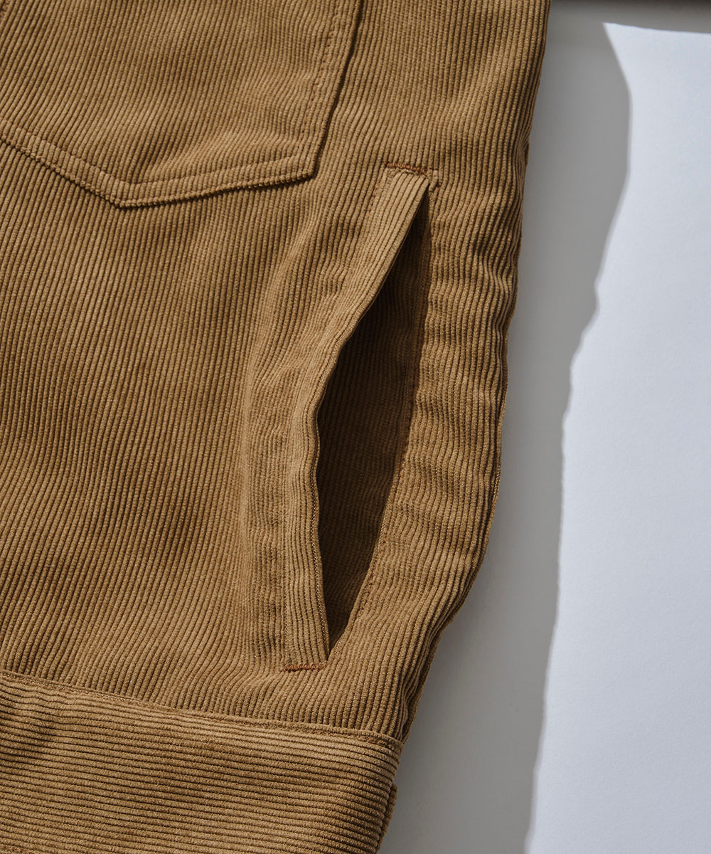 柔らかで軽やかな質感はコットンコーデュロイでは味わえないコンフィーな着心地。