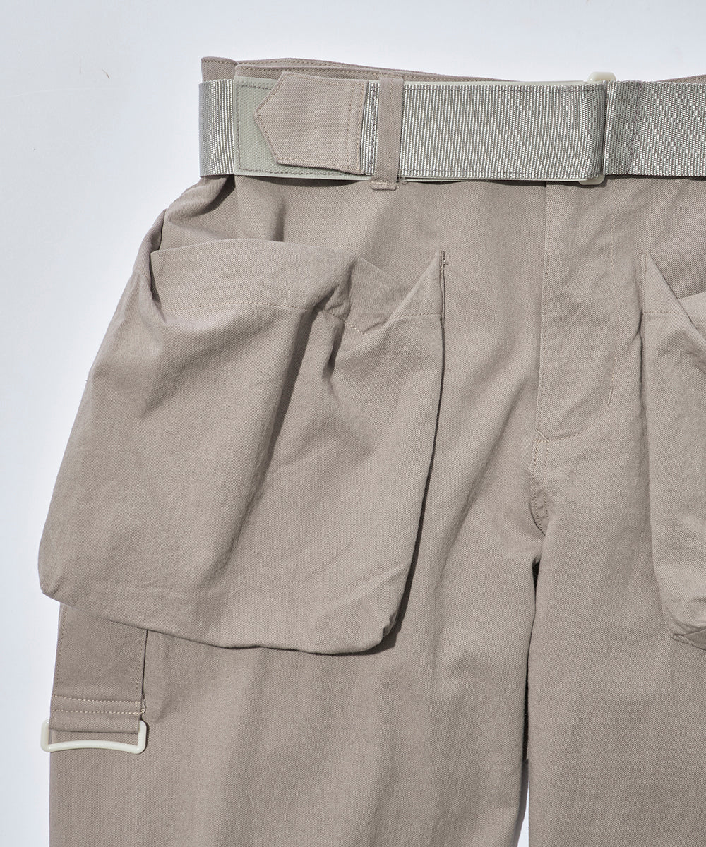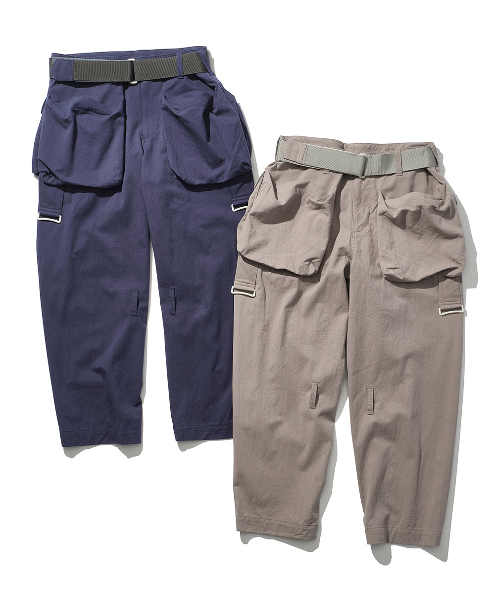 立体的なポケットが目を惹く9分丈パンツです。用途よりも主張を感じさせるポケット下の角カン。生地は、今シーズンのフィーチャー素材のひとつであるコットン...