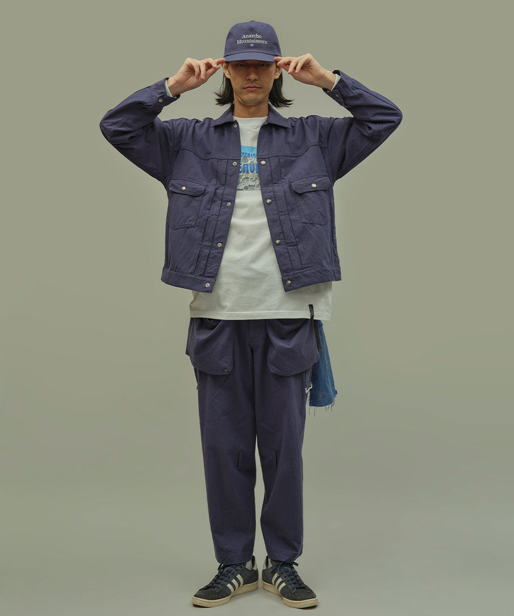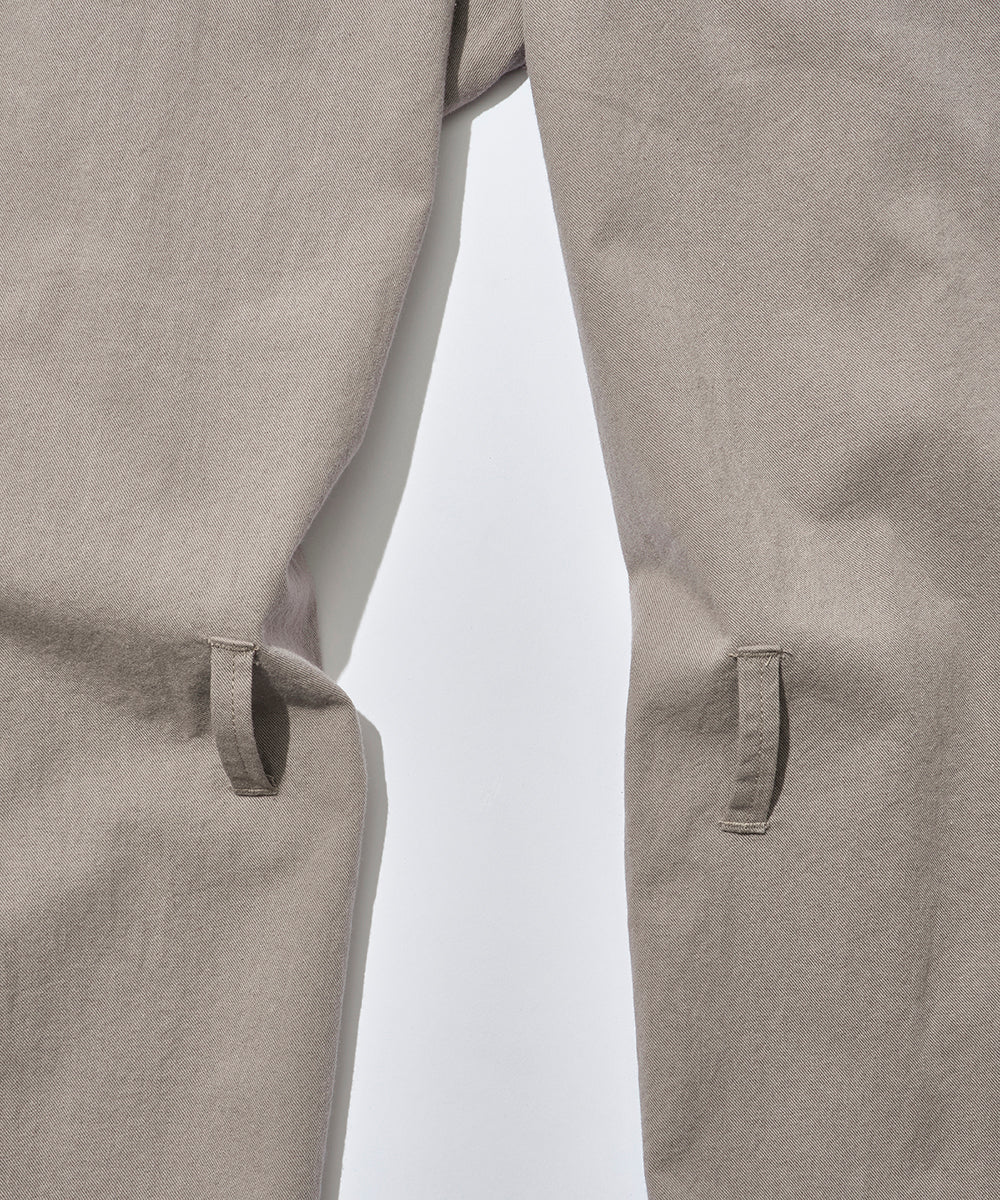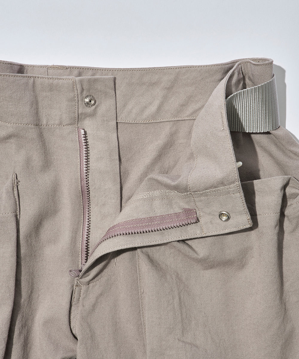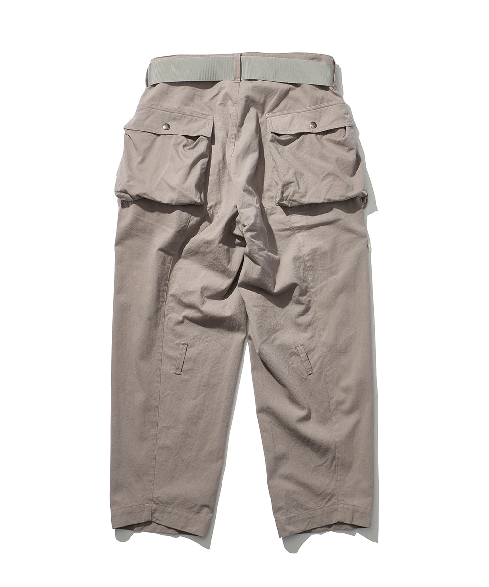 立体的なポケットが目を惹く9分丈パンツです。用途よりも主張を感じさせるポケット下の角カン。生地は、今シーズンのフィーチャー素材のひとつであるコットン•ウールツイルを採用しています。同素材のジャケット MTR4149 / TYPE Ⅱとセットアップ推奨です。