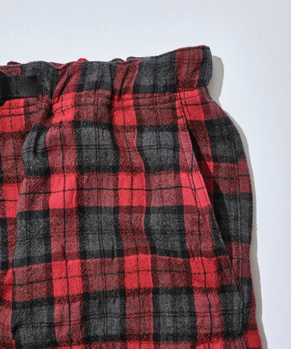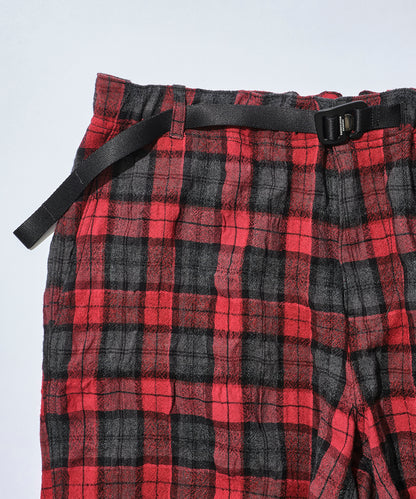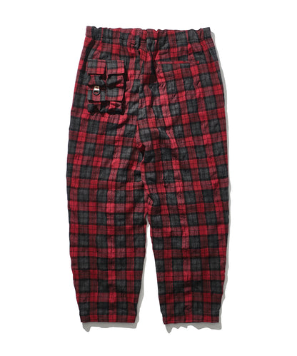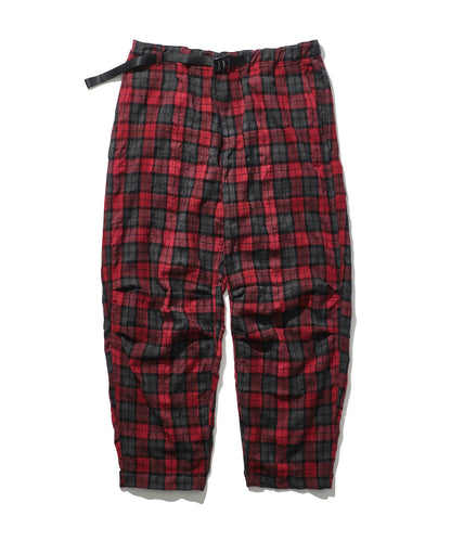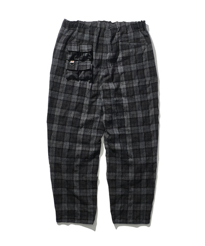 マウンテンリサーチ初期より、ブランド意匠を自負するフィッシングベスト由来のポケットを用いたトラウザー。一見、チェックのクライミングパンツですが、ヒップに通称”パラポケ”を4つ配置した遊び心ある作り。スピリットと暖かみを感じるコットン混の縮絨チェックウールを採用。同素材のシャツ・バリエーション、MTR4167 Phishing PKT Shirtとセットアップ推奨です。