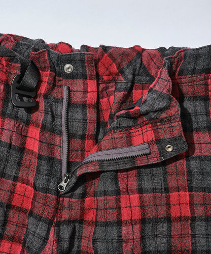 マウンテンリサーチ初期より、ブランド意匠を自負するフィッシングベスト由来のポケットを用いたトラウザー。一見、チェックのクライミングパンツですが、ヒッ...