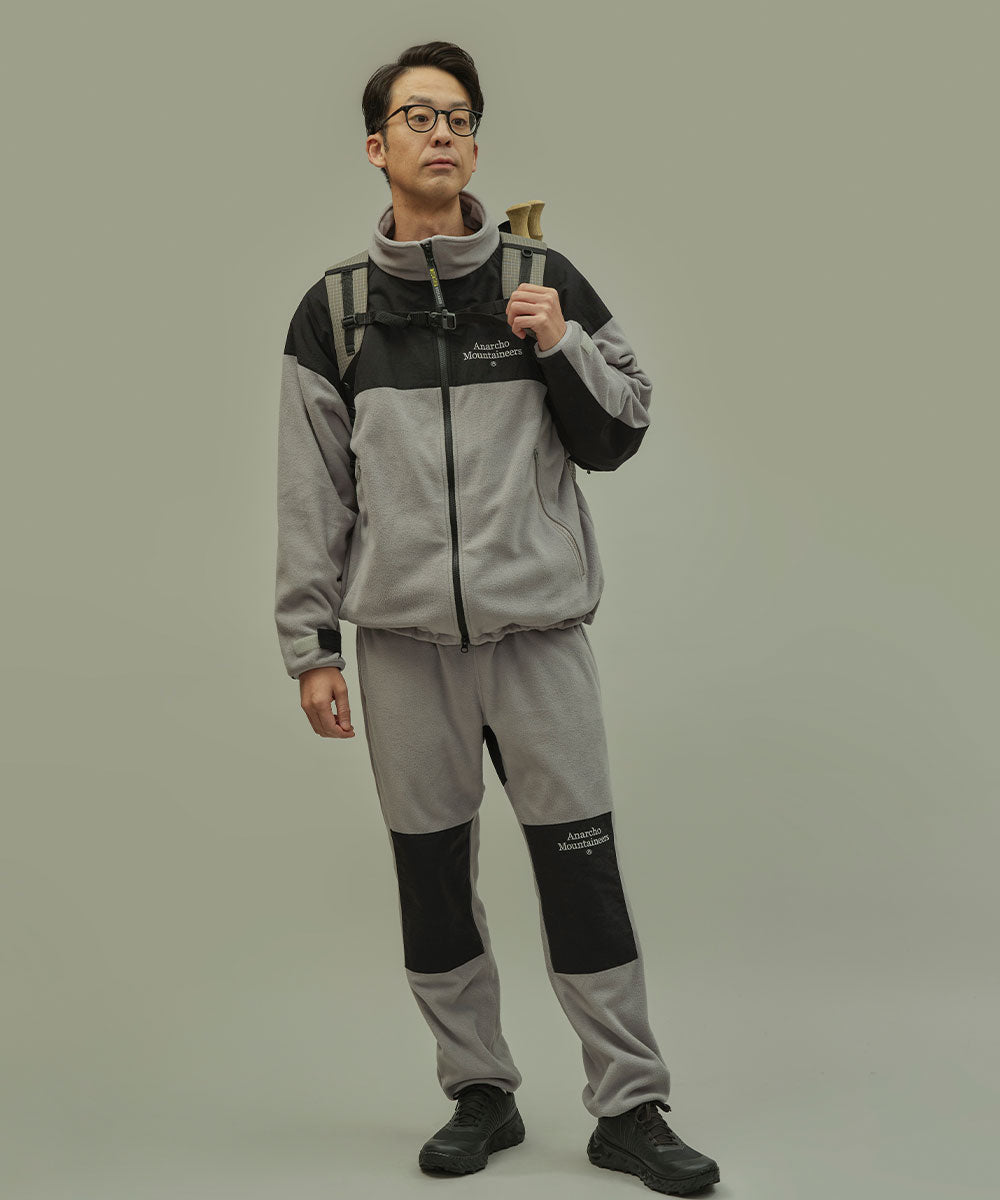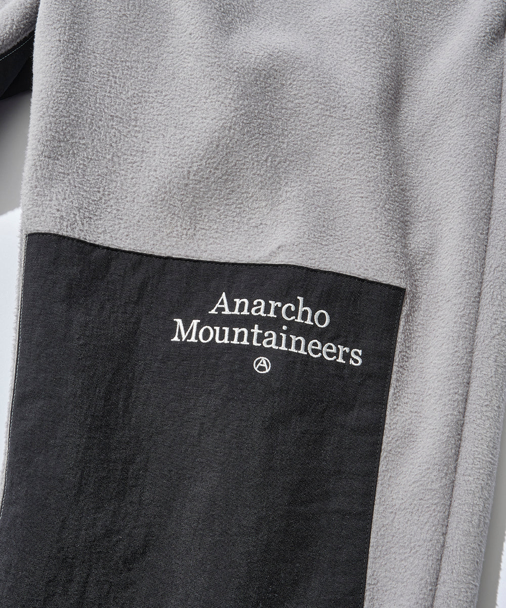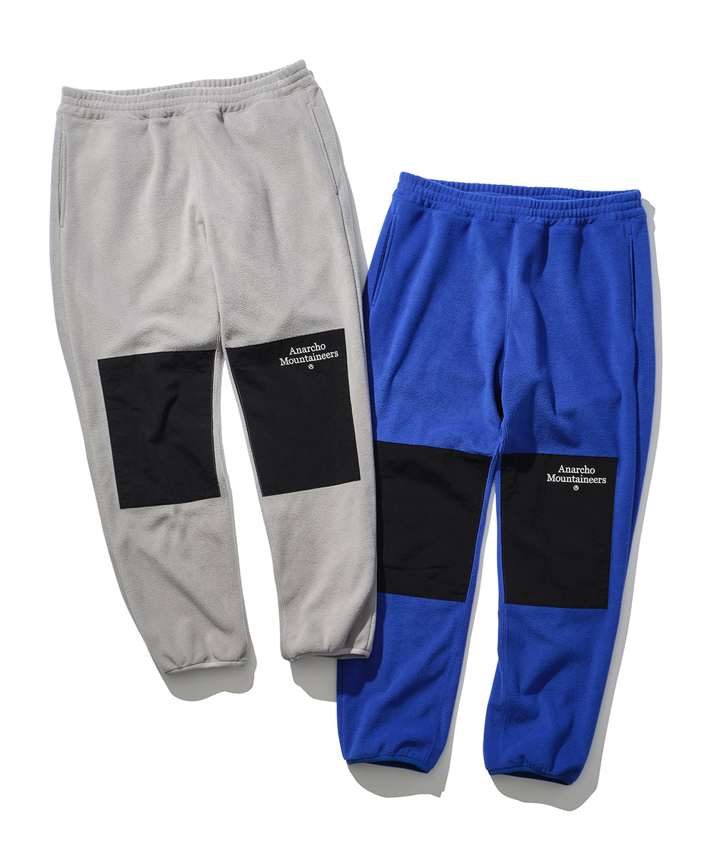 リサイクル・マイクロストレッチフリースの本体に対して、機能素材タスランナイロンのヒップパッチとニーパッチを用いたフリースパンツ。裾に配されたストレッチバインディングは冷気の侵入を防ぎます。左膝にはA.M.刺繍。是非とも上下揃えで。