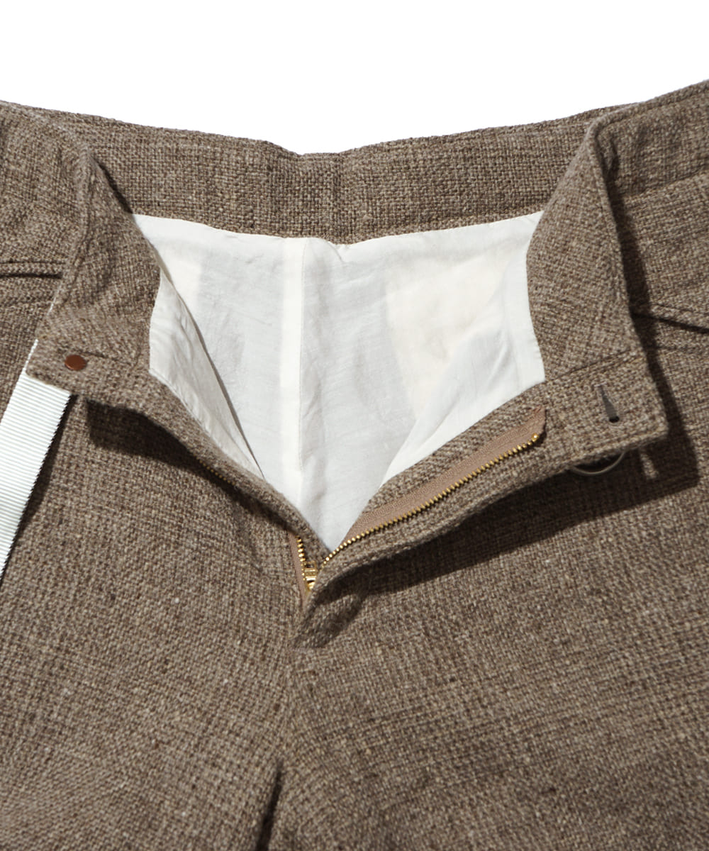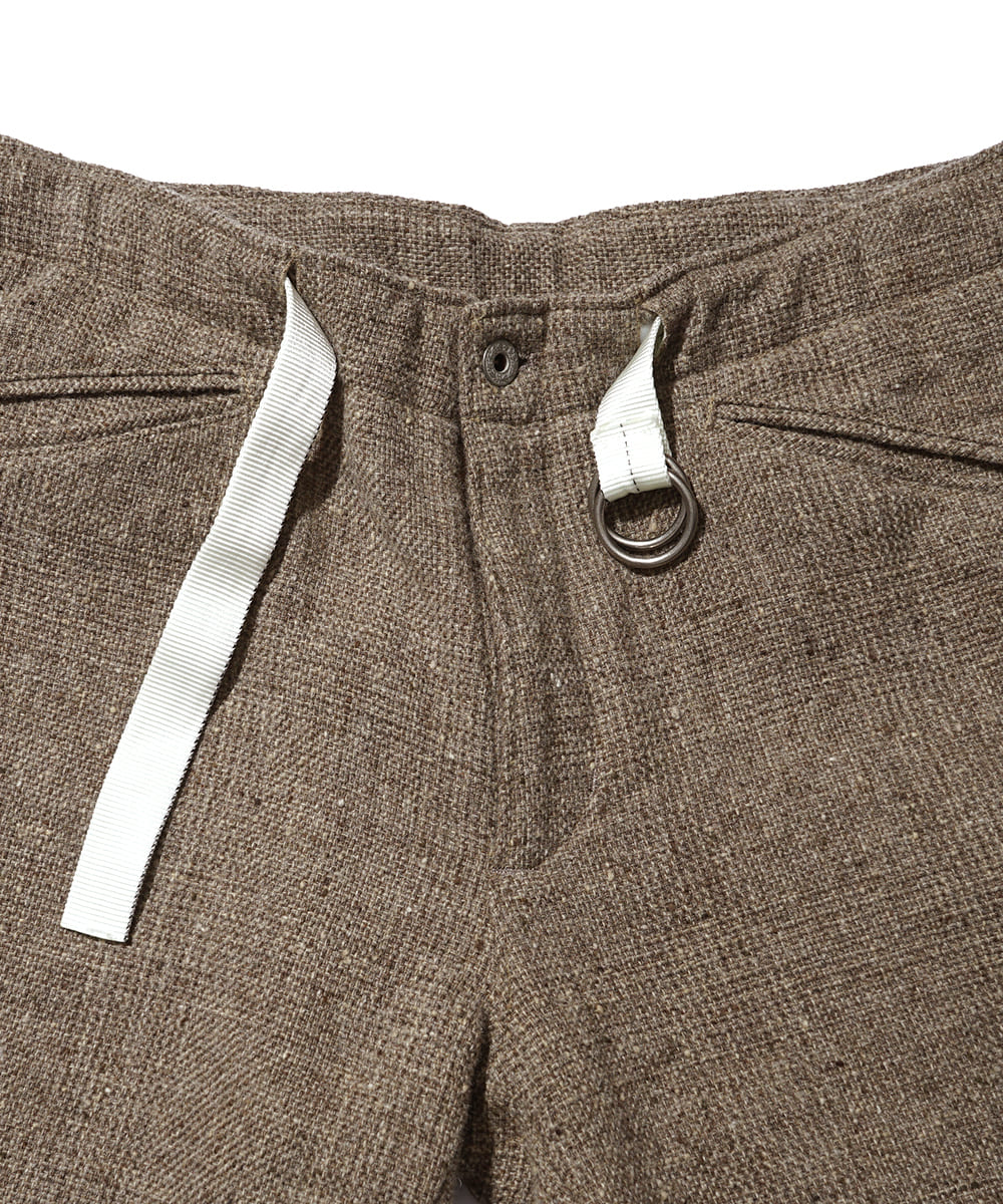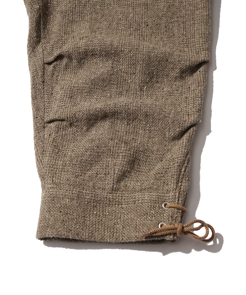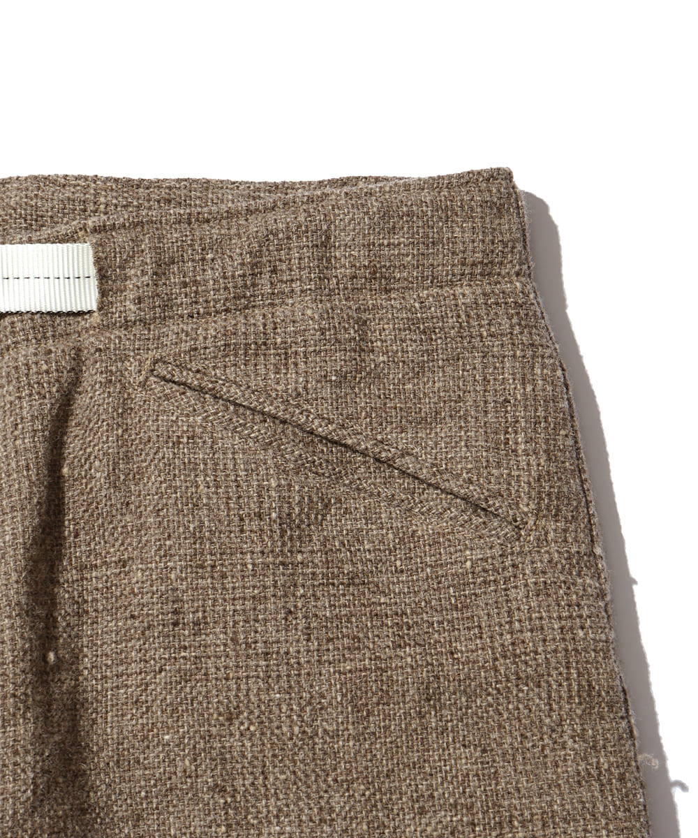 古き山岳民のパンツ、ニッカーボッカーズ改め”ニックス”。マウンテンリサーチの初期衝動(2016年)である定番ボトム、通称ニッカーズが山の正装着として再びにして、M.F.T.ならではのLOOSE FIT狙いの大胆なシルエット改訂バージョン。本作は前述のベストと同じく2素材による展開。こちらはジャケットの一群と同様のツイード版。