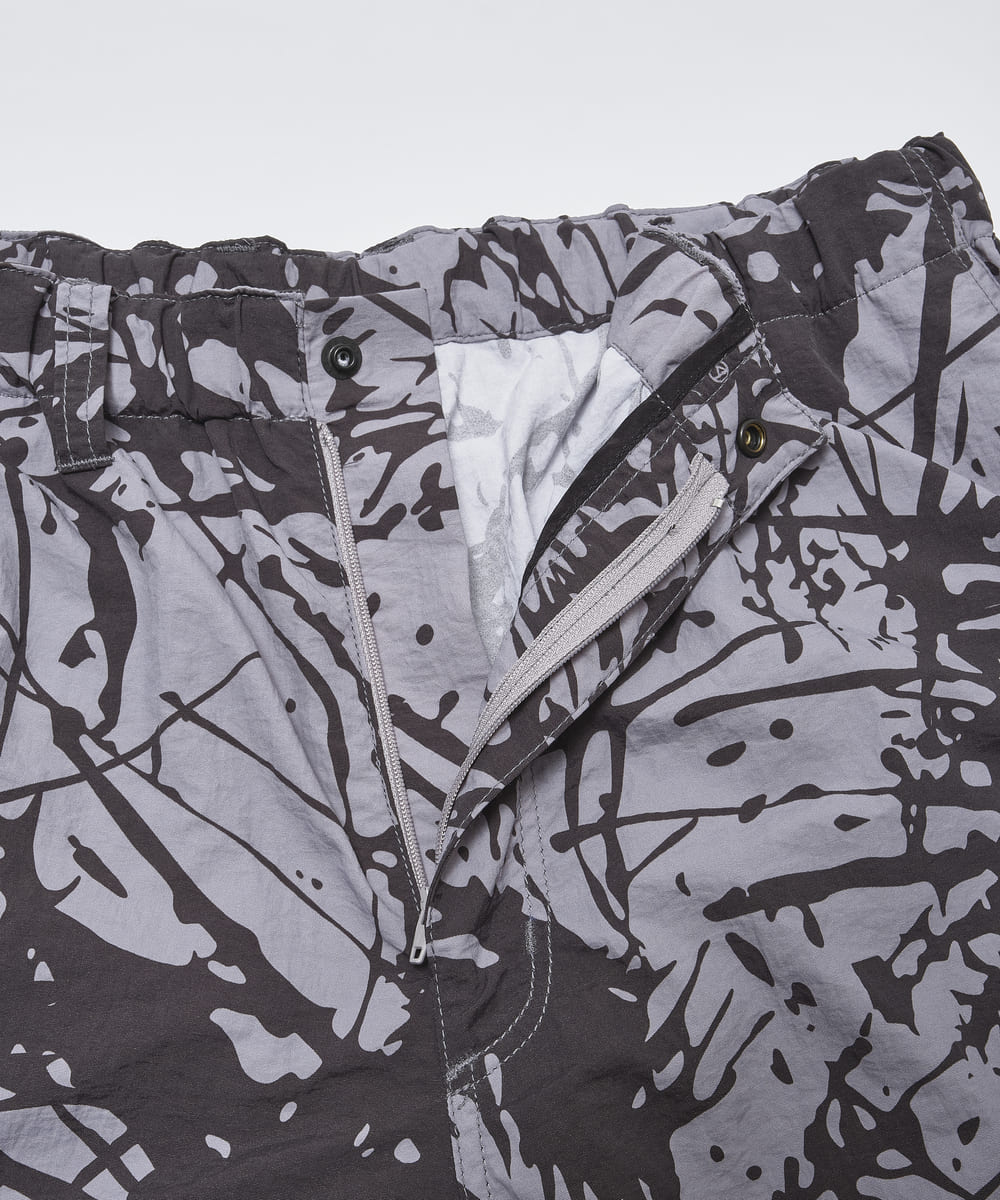 シーズンのフィーチャーパターン”Splatrail”をまとった、ダイナミックかつユニークな表情のワイドパンツ。濡れたトレイルやその跳ね返りの瞬間をイメージソースにしたグラフィックが、存在感を放ちます。素材には、軽量で速乾性に優れたタスランナイロンを使用。裏地には通気性の高いメッシュ素材を配しています。シルエットは、ゆったりとしたワイドテーパードの9分丈です。