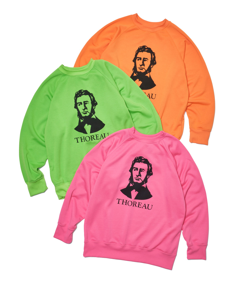 ベートーヴェン調に描かれたヘンリー・D・ソローの肖像のスウェットシャツ。素材はUVカット・吸水速乾性に優れたポリエステル。2026CWは明るく鮮やかな色合...