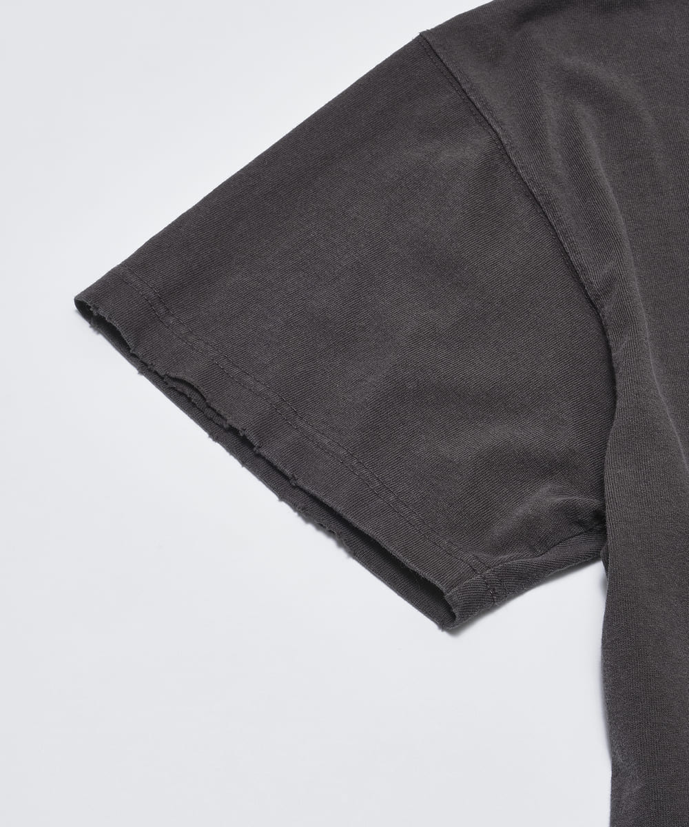 ダメージ加工のプリントTシャツ。コットン100%素材のボディに職人の手作業によるダメージ加工が施されています。プリントは、シーズンテーマに深い関わり...