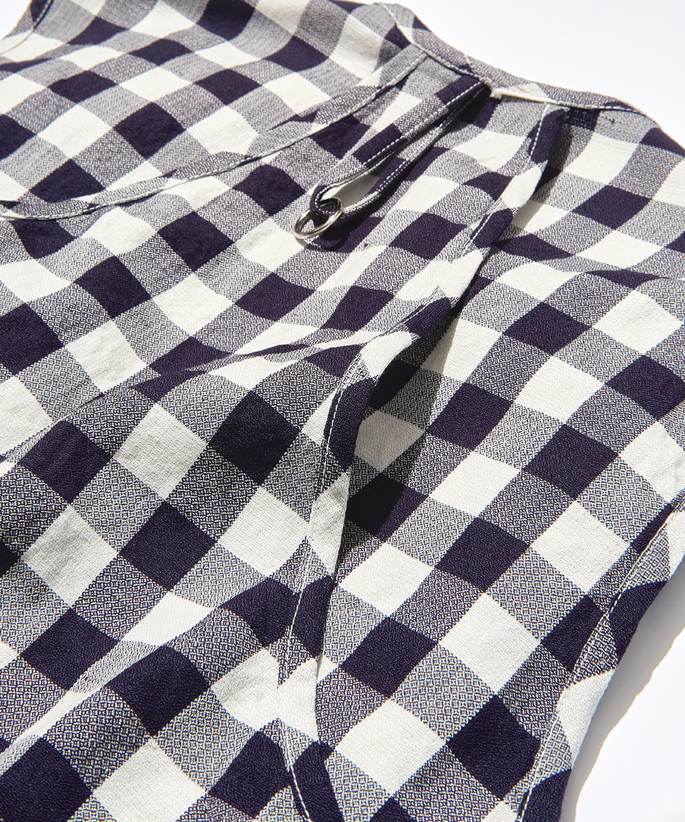 フィッシングベストは、今や皆様が知るところであるC●LUMBI●社の旧名作にワン・ツイストを加え、ポケットに代表される全ディティール忠実に再現しながら、GR時代から長年に渡り取り組んできた弊社が誇るアイコニックなウェア。初となるM.F.Tエディションでは、フレンチリネンと上質なウールを混紡したドビー織りによるオリジナルファブリックをフィーチャー。M.F.Tが標榜する「”できるだけ”石油系マテリアルに頼らない」志向を表すものとして、本来ベルクロ&プラファスナーであるパーツがメタルドットボタン&メタルファスナーに変更されている。ポケット裏などからチラ見えする配色ギンガムにもご留意を。